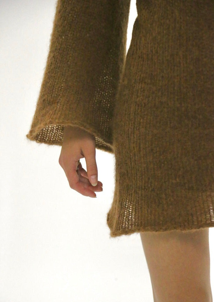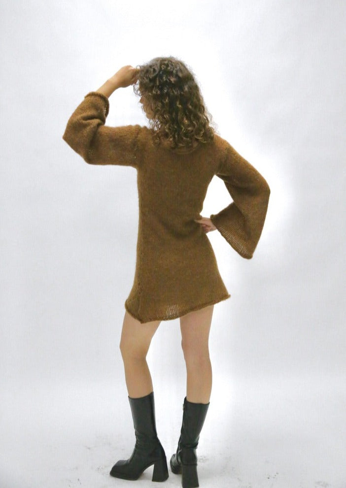 The Justine dress was the best seller from the Autumn/Winter season in 2023 (Froots’ launch collection!!). It is made of a looser type of knit stitch, short dress length and bell sleeves.